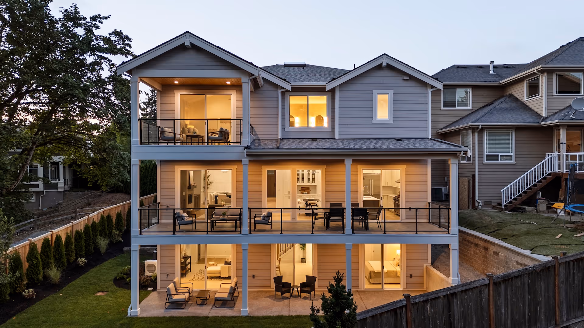 Positioned against a serene greenbelt, the home features covered decks on every level and direct access to the Sammamish River Trail. Located within the highly regarded Lake Washington School District, this build reflects our commitment to craftsmanship, functionality, and timeless design.